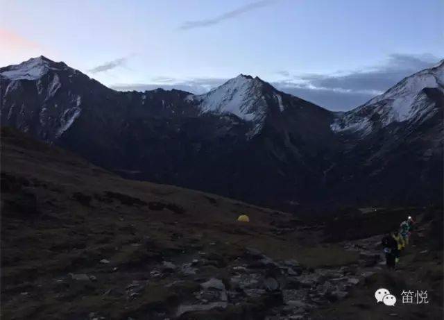 5点发枪,开跑后按照既定策略:“因为上山不会加重受伤的部位尽量赶时间,下山放慢忍住不跑。”过了栈道后拿出手杖,赛前一直在想水袋的吸管冻住怎么办,但万万没想到手杖给冻住了!途中厚着脸皮找了三位帅哥帮忙,均未打开。到了CP1先没打卡,直接扑向一位男志愿者祈求帮忙打开手杖,志愿者打开杖的一瞬间,脱口而出“你是我的救命恩人呀!”,打卡时间6:25,稍作调整,继续前行,打尖包到大本营是自己此次越野跑最舒坦的路程,爬升595米,路程4.1公里,海拔从3719米到4314米,一路有马道有树林还有高山草甸,天空逐渐发白,远处延绵不断的雪山隐约可见,忍不住回头看风景忍不住拿出手机拍照,希望时间永驻自己可以留在四姑娘。