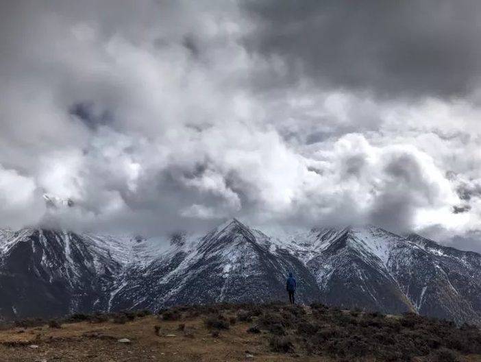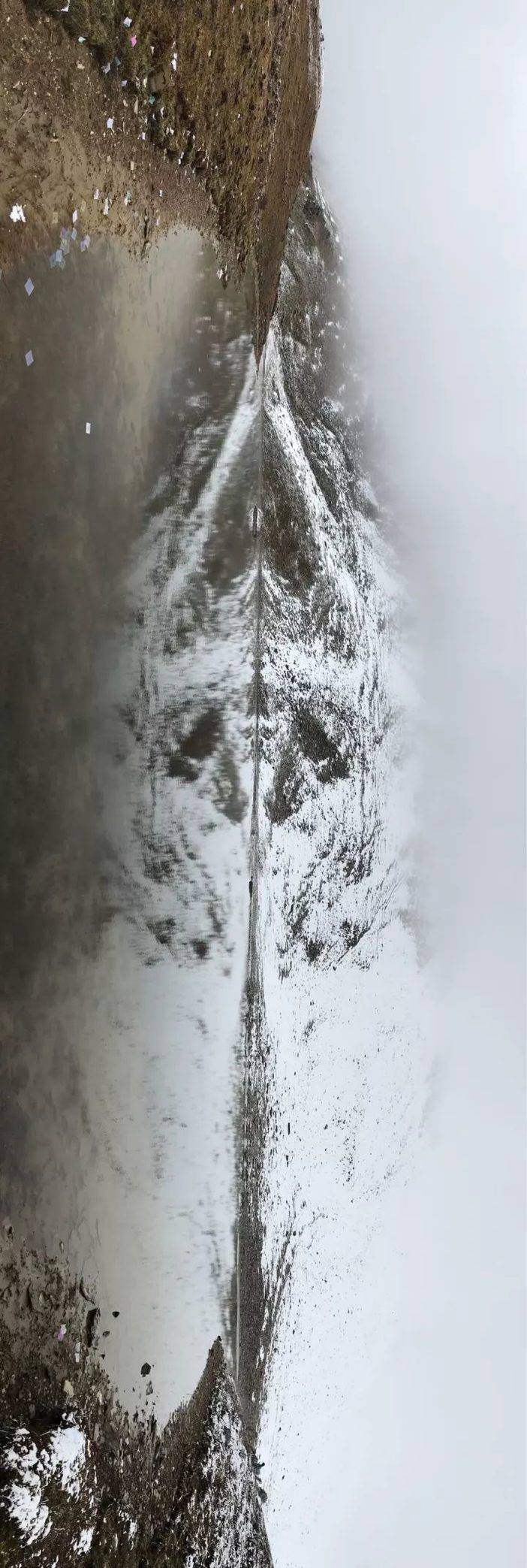 我离你们最近的那次,发生在徒步的第二天。我跟小仓沿着山脊,就是海子沟与长坪沟中间的那条长长的山脊,走到了垭口,又横切到了岔路,左边的那一条便是上大峰的路。那时候天开始飘雪了,我大概有好几年没有见到下雪了,感觉有点冷,却又充满了兴奋。我们循着上山的路一直走到了海拔4200米的大峰大本营,哪里其实只是一圈平房,我们托了屋里一位大爷的福,烤了一会火,吃了些干粮。