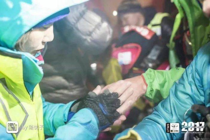 当然更别说在海拔四千多的CP点的那些志愿者们,他们是提前一天带着物资徒步到山上,在帐篷里露营一晚,第二天凌晨在选手到达前就要早早醒来,从八角棚海里砸冰取水,烧水烧汤,摄影志愿者给相机的电池贴上暖宝宝,不然在这极寒的天气里,锂电池是无法正常工作的。在这天寒地冻的角落里,他们相互取暖,还要把这一份暖意带给陆陆续续到来的选手们。Vicki说她到了CP2之后双手已经冻得失去了知觉,一位志愿者姐姐用自己的双手帮它们取暖,让她在获得了暖意的同时,内心里还充满了感动。