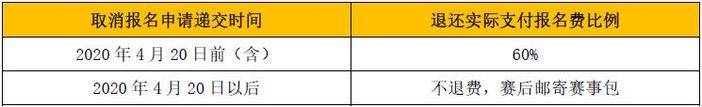 4月20日前,通过邮件申请。邮件地址:aiyoss@utms.com.cn,标题:“取消报名申请-2020夹金山-报名人姓名”。