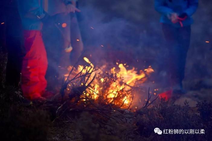 提前5天来到四姑娘,就为了和亚丁结识的章哥、11、喇叭裤、女侠、迪迪、楚飞、三石一起露营和登山,提前适应赛道和高海拔。我们选择的路线是从比赛起点途径打尖包和老牛园子,一路向上,露营点是比赛的CP2补给站八角棚海,怎料到露营那天天公不作美,下起雪刮起风来,由于积雪太厚,马夫怎么都不肯上到4500海拔的八角棚海。于是我们在海拔4200的灌木丛中歇脚。本来想看日落、银河和日出,怎料大雾一起,只能看见小伙伴彼此,是真正云端的约会。烧个篝火,整个啤酒,最后蜷缩在睡袋里,听着落雪轻触帐篷的声音,是不是也很浪漫。