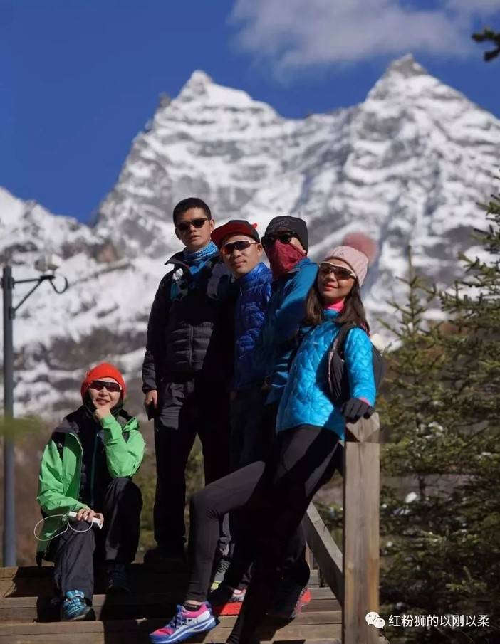 马背跟他的朋友结伴,在爬升过后的山间小路上跑了起来,我有点累,就在后面慢慢跟着。此刻,已经跑了6个多小时,刚刚一半的路程,我决定找个小树丛P一下。接着又可以放开跑了,又追上了马背他们,马背说,怎么就甩不开红粉狮你呢?哈哈,我不在乎小鲜肉的感受,反正跟着他们跑也倒是心情愉快。马背指着对面的雪山山峰说,我们就刚刚在那里横切过来的。望着白白尖尖的山峰,难以想象这么险峻的路段是如何快速通过的。