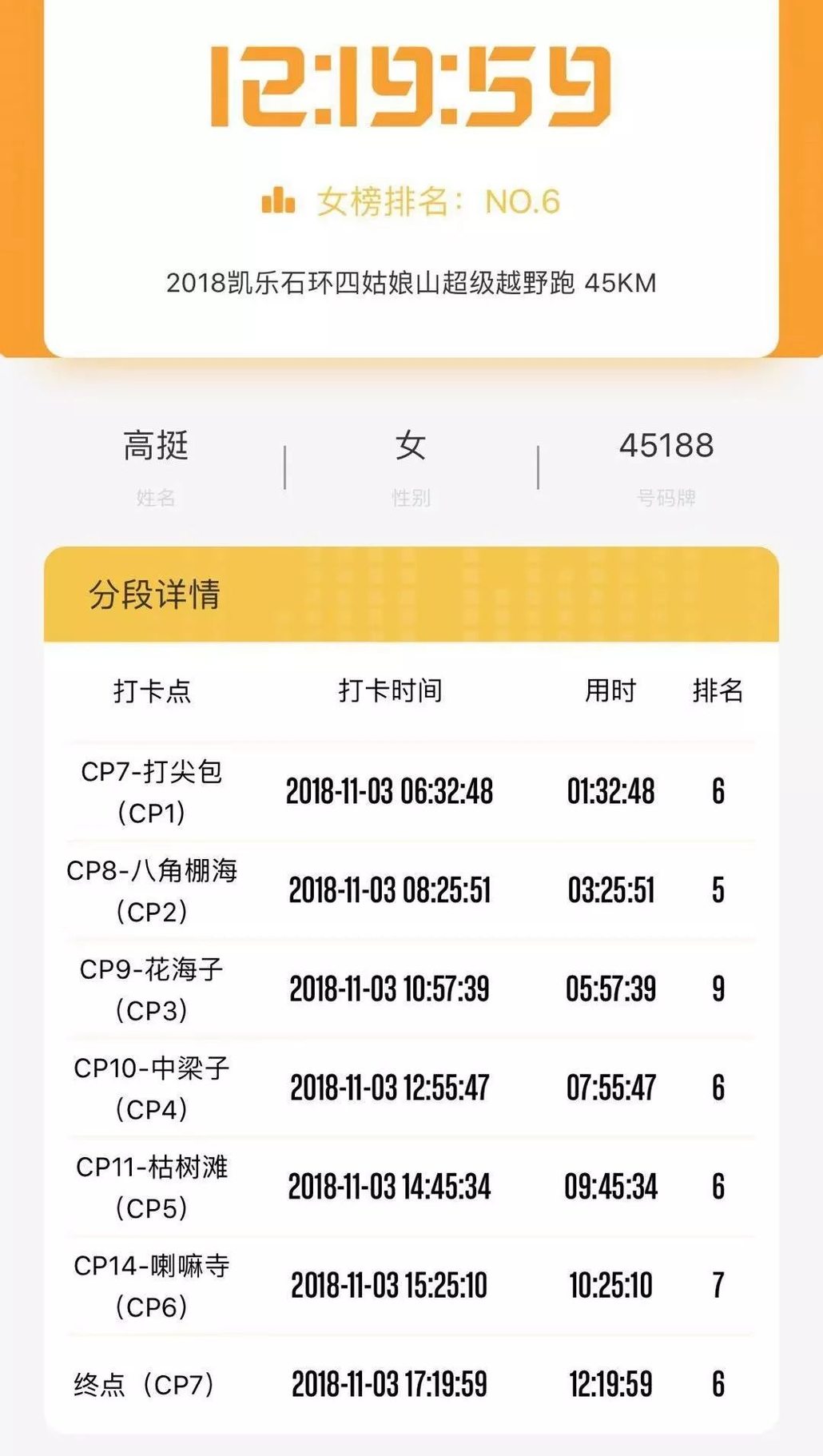 一路跑到终点,冲线时我跳起来,抑制不住的哽咽,天知道针对那些危险路段我做了多少的心理建设、天知道我是如何一鼓作气坚持12个小时下来的、天知道我对完赛的渴望有多强烈。