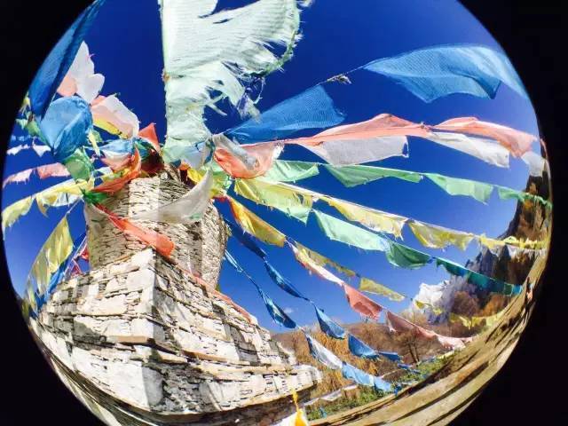 11月6日起床后第一眼便是雪山后隐没的一丝曙光,美丽的格桑花在风中自由自在,牦牛一边吃草一边排泄新鲜的便便,白塔上的经幡迎风招展,虔诚的默念祈求圣山的庇佑,马帮往来穿梭……此刻的我只是一个突然闯入圣境的过客,屏息凝神,唯恐打破这亘古的宁静。