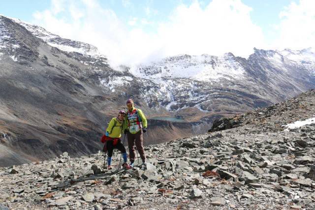 50公里双人徒步组,赛道累计爬升1660米,下降1670米,选手两人一组环绕海子沟多个美丽海子。