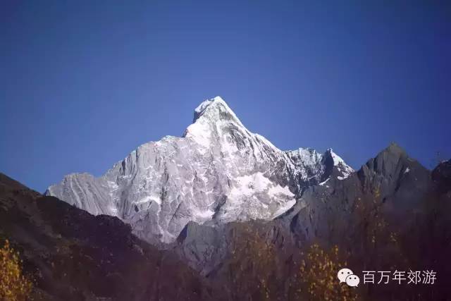 花海子的木桥是另一个让我停下来的地方。这条山谷笔直对着幺妹峰,从底到顶一览无余。如果你是一只蜘蛛侠,可以从这里直接走到峰顶;如果你不是,也可以想象一下。