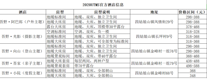 2020UTMS官方酒店信息
