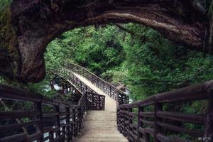 在谷内悠悠行过,沿途瀑布众多,原始森林遮天蔽日,千年绳索吊桥横跨高桥峡谷。