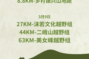 美女峰越野组(63km)、二峨山越野组(44km)和沫若文化越野组(27km)报名选手须年满 18周岁,乡村振兴山地跑(8.88km)报名选手须年满6周岁,未满18周岁的未成年人参赛须监护人报名全程陪同。