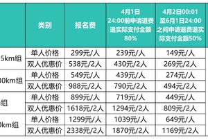 ②双人报名的选手,如出现其中1人取消报名的情况,则先按上表规则办理双人退费手费。继续参赛的队员按单人价格重新报名参赛。