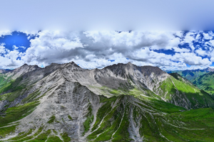 “别同古”译自藏语:山那边的平地,其山脉与四姑娘山幺妹峰遥相对峙,途径溪流、森林、牧场、草甸、海子、雪山,登至顶点可以近距离观看到海拔5399米的跳水岩峰、5341米的龙骨车峰及无名的5400峰、5252峰和5232峰等群峰,连绵起伏的雪山群构成了一幅极为震撼的雪山全景图。