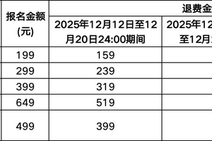 根据赛事筹备的不同阶段,申请退费的对应金额返还比例如下: