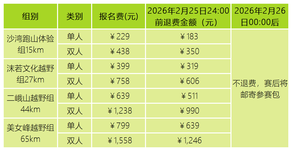 退费申请(非官方渠道报名) | 2026沙湾美女峰超级越野赛 [复制链接]