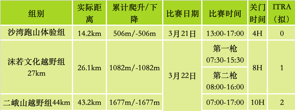 二峨山越野组(44km),沫若文化越野组(27km)出生日期在2008年3月20日至1963年3月20日之间(18-63周岁)。