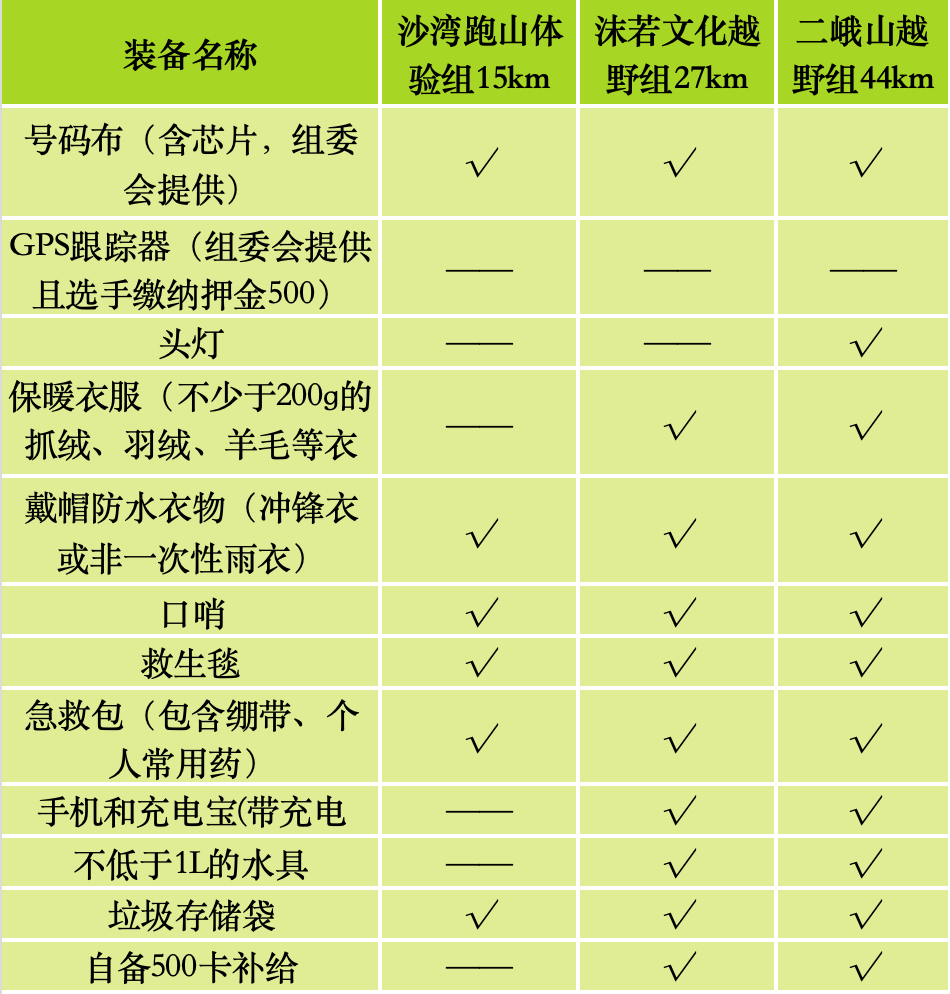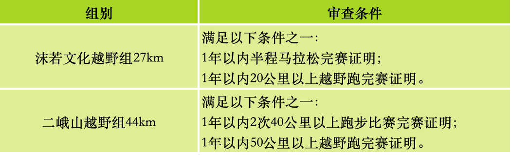 由于越野跑是一项需要具有跑步、户外徒步甚至攀登等综合素质能力的比赛项目,因此从赛事安全角度考虑,二峨山越野组(44km)和沫若文化越野组(27km)报名需满足条件和资质审核。