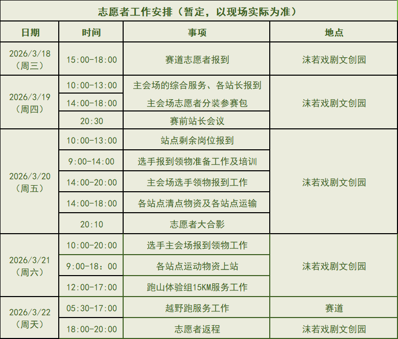 3.确保能够适应和承受越野跑赛事服务的特点:工作强度高,精神压力大,工作时长不完全确定,部分岗位需要熬夜;