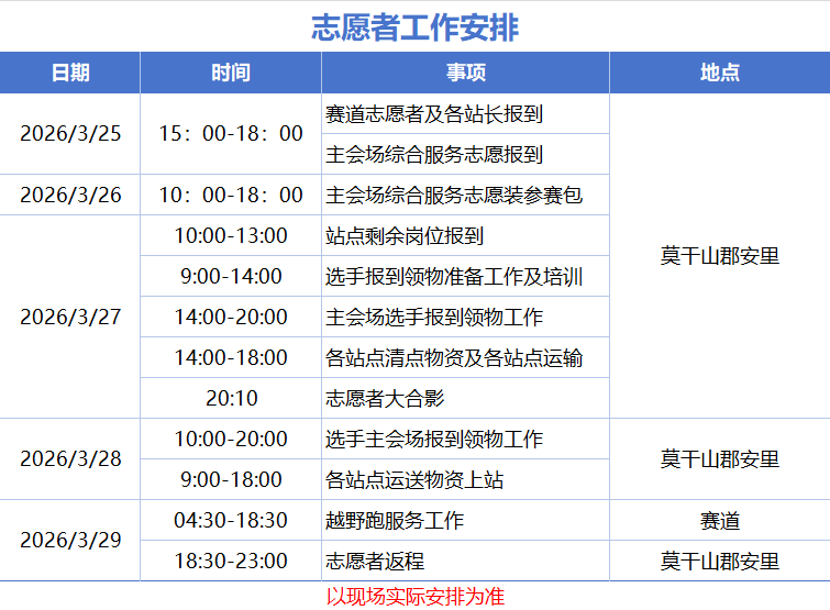 5.非莫干山本地志愿者,赛事期间德清-莫干山的交通往返、住宿、餐食安排;