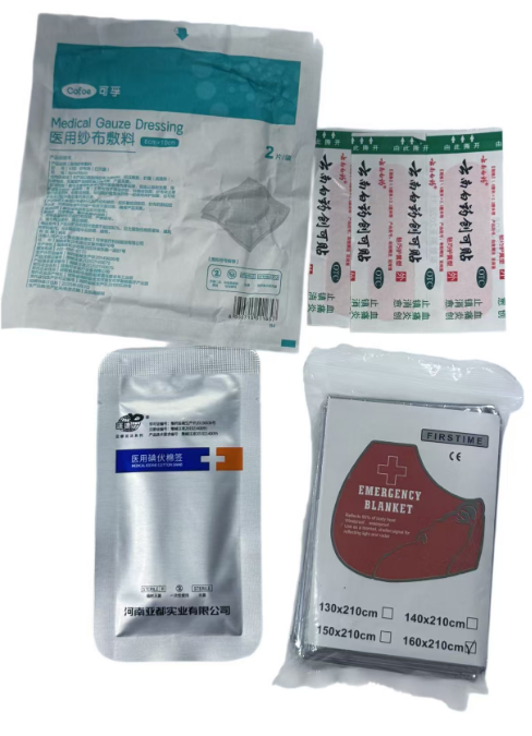 内含:创可贴2张,绷带1个,急救毯1张,消毒棉签