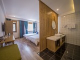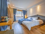 喜欢户外登山的人,是爱自然的生态与野性之美。向山整体设计以原始生态为主题,进门可见用文化石堆砌的客栈前台,墙面也用文化石打造,展现山野风貌。摆件及家具都以原木色为主,每个房间配有一扇青漆竹制隔档屏风,为入住客人提供林中小屋的自然体验。景观大床房的小伙伴还可独享25平开放露台,坐拥自己的一片星空。